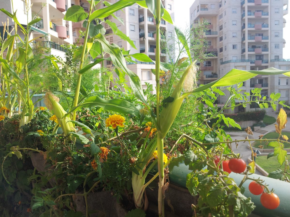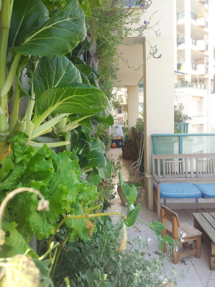 זו האדמה הגבוהה שלי, במרפסת דירה בבניין רב קומות בעיר,בית שינוי תודעתי. מה האדמה הגבוהה שלכם? כך נראית גינת ירק- קיר ירוק ובוסתן עצי פרי בית שינוי תודעתי