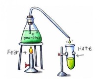 fear and hateאיך נדע מהו התסריט ? נשאל את  הילד הפנימי. נעבור דרך הפחד ונתעלה להבנה שהוא קיים שם רק כל עוד אנחנו נותנים לו מקום. הכל אצלנו בראש. בחירה . אפשר לבחור במעבדת החיים כאן גם לייצר אהבה=הבנה שתחליף את הפחד. איך? עם שיקוי האומץ.הפחד הוא מסוג הרגשות שמנהל את הבחירות של מי שבוחר לתת לו מקום בחייו. זה לא חייב להיות כך. כשאנחנו מתעלים מעל הרגש להבנה – אנחנו מגלים שהכל אצלנו בראש והמציאות היא השתקפות הבחירה התודעתית שלנו, משמע: מחשבות על פחד מזמנות אותו. מחשבות על הבנה – הופכות אותו לאוויר שניתן לחדור דרכו בקלילות, הוא יחדל להפעיל אותנו כשנבחר לא לראות אותו.