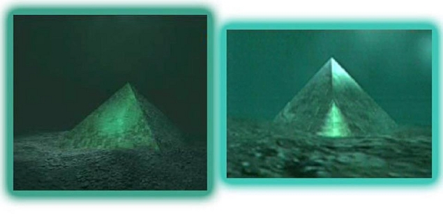 באמצעות צוללות חיפושים, הם גילו מבני פירמידה ענקיים להפליא דומים ל( אבל גדול יותר מ) הפירמידות בגיזה, מצרים. הם מעריכים את פירמידות אטלנטיס בנויות באבנים במשקל של מאות רבות של טונות.