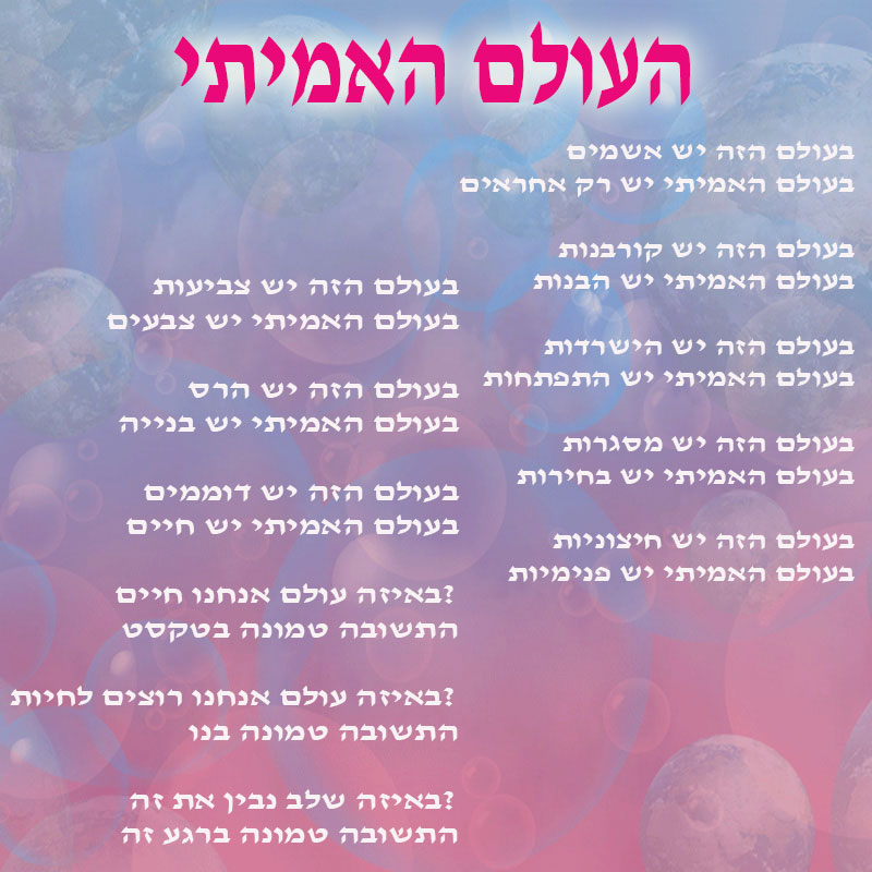 בעולם האמיתי מבינים שהבריאה לא פועלת על סמך המוסר האנושי הארצי אלא ע”פ צדק קוסמי.