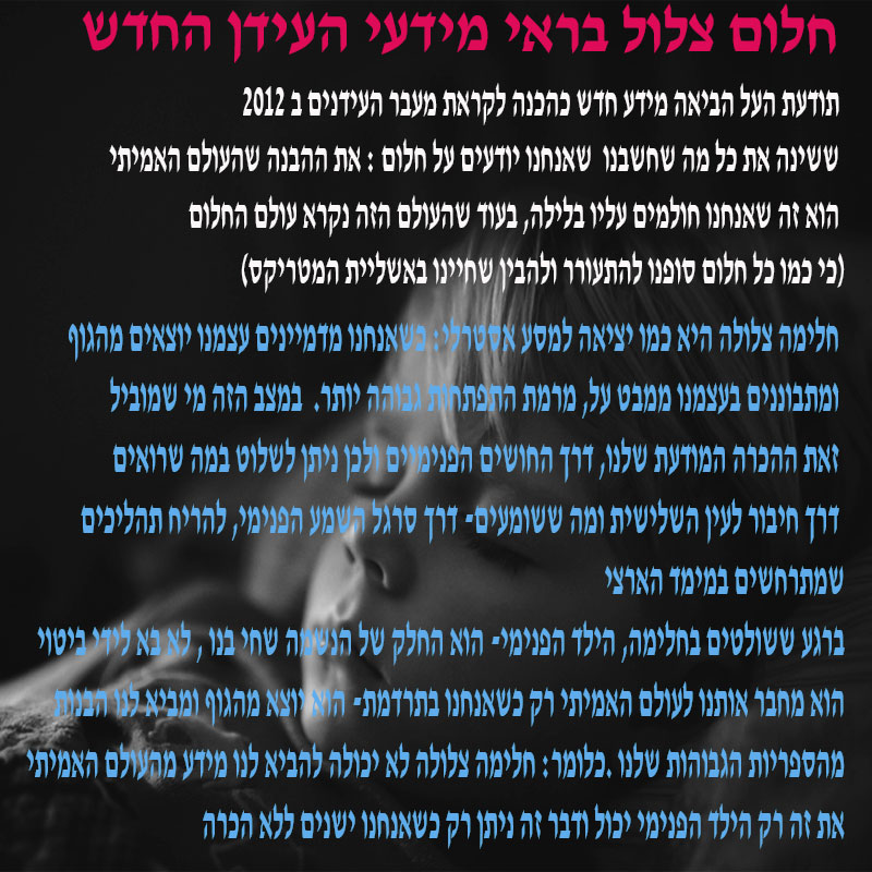 ראיתי הרגע חיזיון בעיני רוחי את התינוק הראשון שנולד במידברן . זה אמיתי. היות ואני לא מחוברת ללוח הזמנים הלינארי אז אין לי מושג מתי הוא יתגשם בפיזי , אבל זה כבר קרה. ראיתי . שיואו איך אני מתרגשת . אני ממש חשה את הרגע הזה, דמעות בגרוני וצחוק של אושר בליבי נוכח המעגלים מעגלים של כולנו מקיפים את הקרוון שבו האם והילד בקריאות שמחה וצהלה