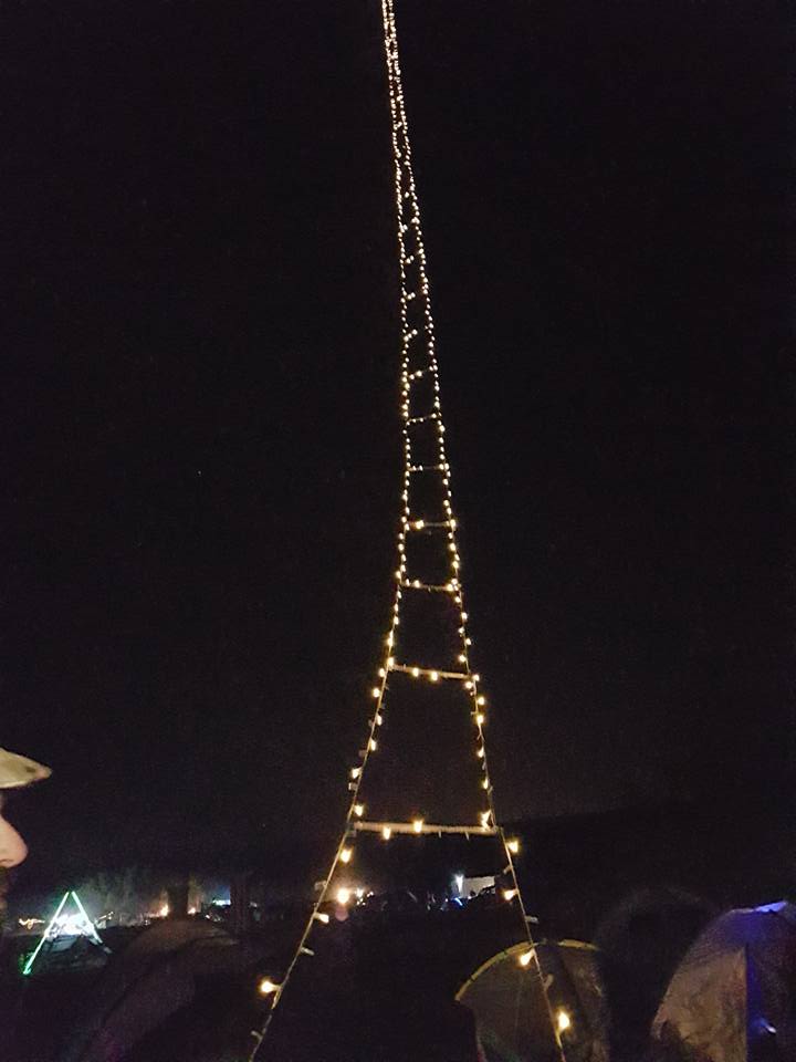 מייצג סולם יעקובי שיצרו מידברנרים בארוע מידבנרות שהתקיים ב 1/1/17 ממחיש את הרעיון(אש) שמכוון את ניצוצות האור מעלה לשמיים (אוויר). יעקב חלם על סולם שראשו בשמיים ומלאכים עולים ויורדים בו אל הארץ, מורידים את הבנות הרוח לחומר- למימוש באדמה שאותה כך הבין יעקב קיבל על מנת לבנות בית. שלט הכניסה הראשון שקיבל את פני במידברן הראשון היה:”ברוכים הבאות הביתה”. אין, אין כמו בבית.