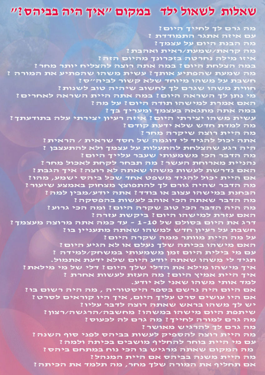 שאלות לשאול ילד במקום “איך היה בביהס?”