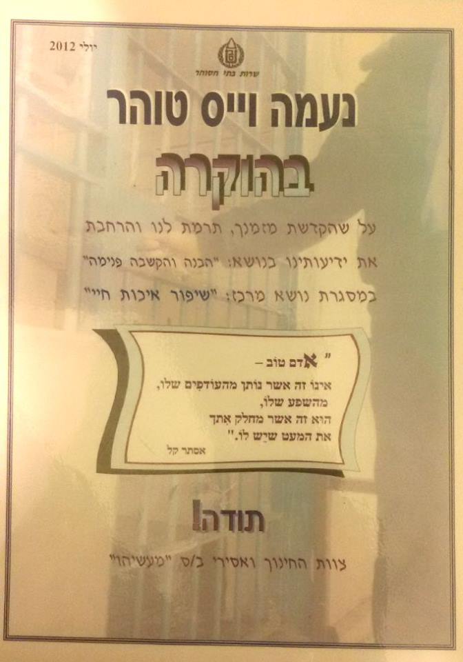 שיעורי תודעה ראשונים שלימדתי (ב 2012) לקבוצה גדולה של אנשים, היו לאסירים בכלא מעשיהו . אנשים שעברו על חוק צדק ארצי התקבצו ללמוד מהו צדק קוסמי, להבין למה דברים קורים כמו שקורים, מה הסיבה הגבוהה לבחירה שלהם לעשות מה שעשו , לדעת איך לחשוב בתבונה ולהכניס יותר הבנה (אוויר) לפני סוף המעשה הפיזי (אדמה). היה להם מימון אנרגטי חתום מראש בתסריט הנשמתי לפסק זמן במשחק חייהם שמוקצה לטובת חשיבה והבנה. האנשים האלו , שרובנו מכנים אותם חלאת המין האנושי ומקצים אותם מחמת מיאוס, רצו, ממש רצו , להבין . בדרישתם את המידע הם העלו את תדרי התודעה הכוללת, יותר מאשר כל האנשים שכביכול חופשיים בעולם הארצי הגשמי אבל כלואים בכלא תודעתי, מחשבותיהם נעולות בתוך מסגרות חשיבה מקובעות שסוגרות כל פתח להתפתחות.